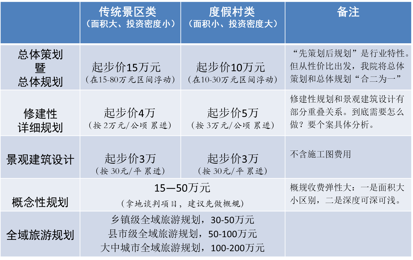 首先必須說明,旅游規(guī)劃收費(fèi)并無所謂的“標(biāo)準(zhǔn)價格”,但很多客戶還是表示希望“知根知底”,所以至道規(guī)劃院就結(jié)合多年經(jīng)驗(yàn)及行業(yè)...